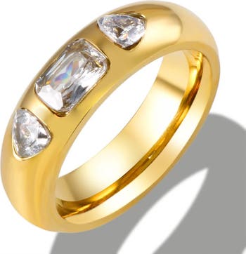 The Eye of the Beholder Ring features a polished band set continuously with subtle, bezel-set cubic zirconia “eyes,” creating a sleek and elegant aesthetic. It reads like a modern signet but with a playful twist.