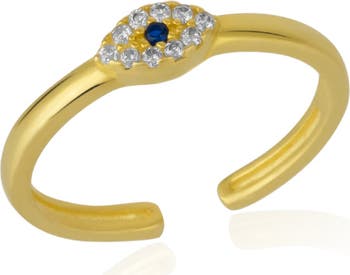 Spero London Eye Sterling Silver Adjustable Stacking Ring Evil Eye, Main, color, Gold