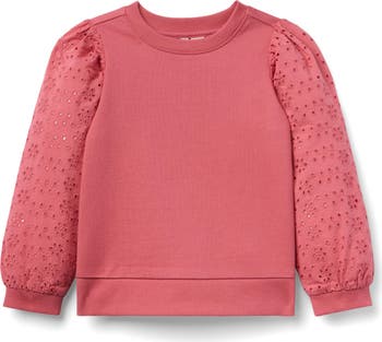 Their new favorite layer. Designed in pure cotton French terry, our puff sleeve sweatshirt features eye-catching eyelet sleeves and ribbed details.