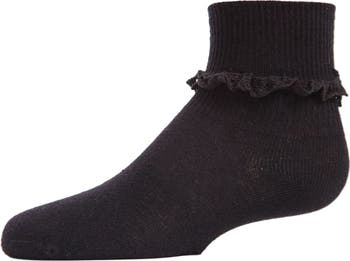 Does she love today's girly-girl look? She'll appreciate these adorable ankle socks. They're knit for soothing softness with premium breathable cotton. And they're trimmed for feminine flair with a delicate eyelet ruffle. Choose from an array of cool colors. Why not stock up on them all?