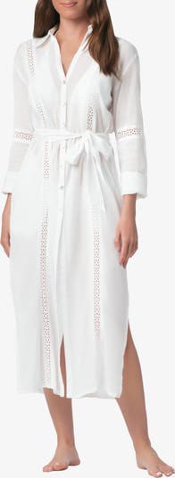 Eyelet lace brings an heirloom quality to this button-front dress. The detachable belt lets you define your waist or leave it loose for a more relaxed fit, while the side pockets add unexpected practicality.
