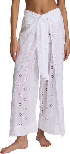 Put a little extra swish into you sashay when you cover up around the pool or at the resort in these airy eyelet pants that wrap to a soft, floppy tie.