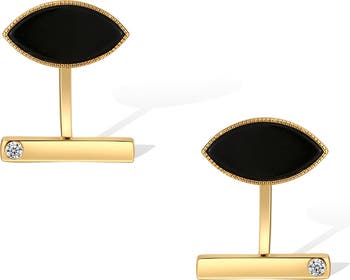 • Hand-cut marquise black onyx with a small diamond representing light.