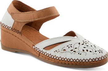 Smooth leather defines this airy laser-cut pump set on a supportive wedge heel and balanced by a low platform for subtle lift.