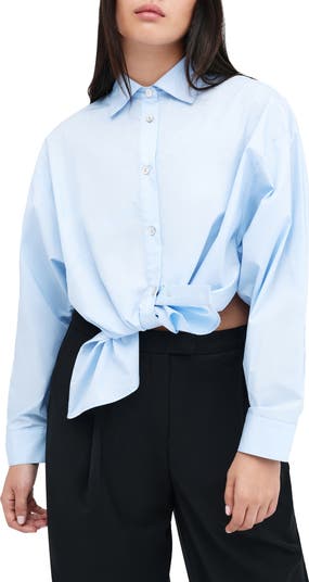 Cropped at the back, long in front, this cotton-poplin shirt can be styled in multiple ways to keep your wardrobe interesting.