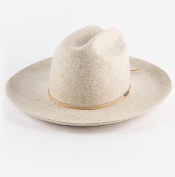 Discover the Ezra Western Hat, where bold fashion meets classic Western style. Designed with a timeless cattleman crown, this versatile hat is perfect for both adventures and countryside outings. Its upturned brim and tall crown create a contemporary and feminine silhouette. The Ezra is finished with a chic removable tonal grosgrain band adorned with a brass Gigi Pip pin, adding a touch of elegance. Elevate your wardrobe with this statement piece that effortlessly combines tradition and modernity.