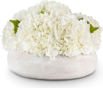 The Ezri RealTouch Hydrangea features lifelike RealTouch hydrangeas arranged in a sleek cement round bowl. This large and impressive piece makes a bold statement, adding timeless beauty and natural charm to any space. A lasting luxury, timeless and unrivaled.
