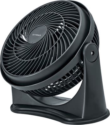 Place the Optimus F-7080 8 Inch High-Performance Air Circulator Fan anywhere to cool off right away. It features a powerful fan for pushing air around a room while boasting a contemporary euro-design. The variable 90 degree fan tilt helps adjust air flow for proper cooling. Item Dimensions: 11.30" x 6.80" x 10.20" Item Weight: 3.00lbs