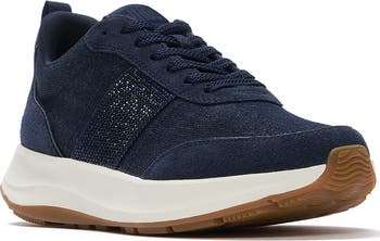 The effortless styling of go-to denim makes its way to your footwear. Two staples of your casualwear wardrobe collide to create FitFlop denim F-Mode sneakers. They have a classic, easy-to-pull-on silhouette that's detailed with tonal, tactile suede panels and sparkling crystal embellishments studded along the sides. Built on the signature FitFlop Microwobbleboard™ midsoles, these everyday sneakers deliver triple-density cushioning that works in harmony with your natural gait: firm at the heel for impact absorption, soft through the middle for maximum comfort, and medium-density at the toes to push you forward. The result? Footwear that helps to optimize your everyday movement – while keeping you effortlessly on-trend.