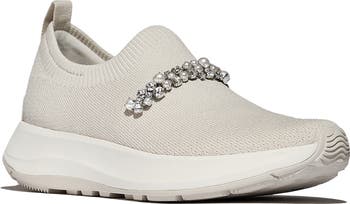 Where sporty silhouettes meet sophisticated embellishment – these aren't your average slip-on sneakers. Crafted in a thicker, more structured knit this season, the F-Mode Flow sneakers offer a secure, comfortable silhouette to support your feet through busy days. They're fully lined in a breathable, recycled mesh and built on signature FitFlop Microwobbleboard™ midsoles, delivering triple-density cushioning that helps to maximize your energy efficiency while cutting down on muscle fatigue – keeping you going for longer. At the back, a tonal pull tab makes it easier to pull these slip-on shoes on and off, while at the front, the textural knit is elevated with a cluster of gemstone embellishments. Style, meet substance.
