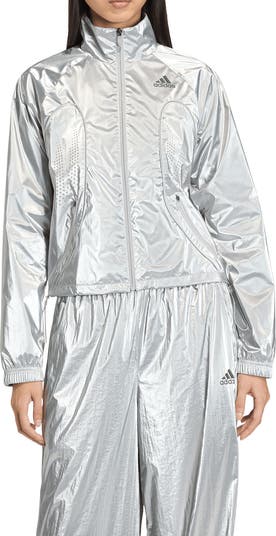 The brand's logo at the chest brings classic adidas style to this modern metallic track jacket made with regular fit and a drawcord toggle at the hem.