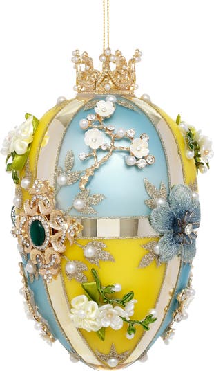 Faberge Jewel Egg Ornament, Blue Yellow, Quatro
