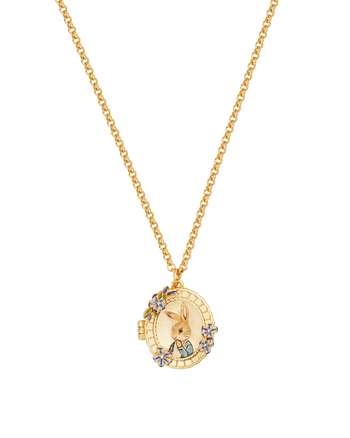The Fable England x Peter Rabbit Cameo Locket Necklace makes a perfect layering piece. Crafted in 22ct worn gold-plated brass, it features a locket with a beautifully hand-painted Peter Rabbit surrounded by delicate flowers. The reverse is engraved with the meaningful message, €œEven the smallest one can change the world. Finished with a fine adjustable chain, it can be styled alone or layered to suit your look.