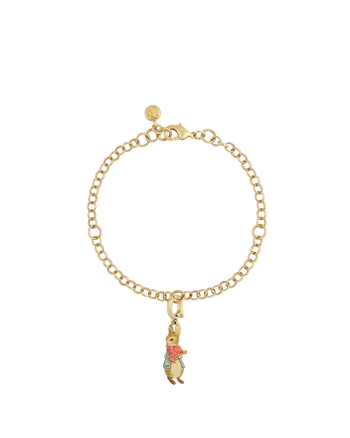 - Detail: Bracelet featuring a delicate hand-painted enamel Peter Rabbit with scarf charm.