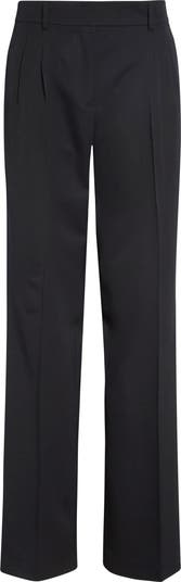 Neatly crimped pleats add sensible structure to softly flared pants tailored from lightweight wool.
