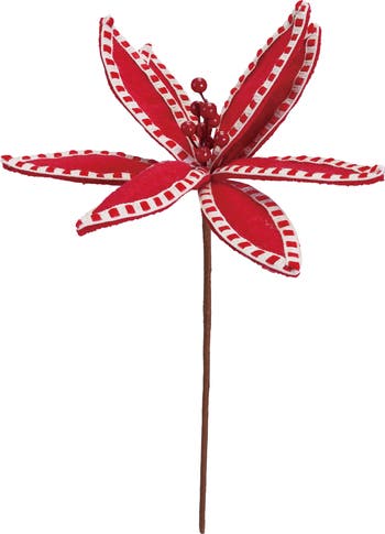 - A stunning fabric poinsettia pick with detailed stitching in festive red and cream colorsPerfect for winter and Christmas styles, adding elegance and warmth to seasonal arrangementsUse it to enhance wreaths, centerpieces, holiday displays, or floral arrangements with a classic touchMade of polyester, Styrofoam, plastic, metal, and paper15" H