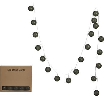 - A colorful and fun set of fabric string ball lights with plastic cord and 20 lights in green