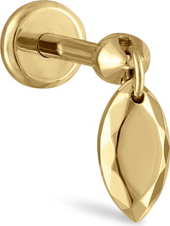This marquise-cut stud earring crafted from 14-karat gold adds multifaceted shine to everyday ensembles.