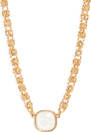Polished chains that appear to cascade down your neckline and meet at the bright, faceted center pendant make up this exquisite necklace that sets the tone for any look.