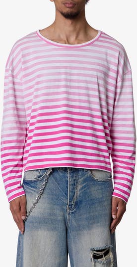 Crisp stripes wash out as they near the neckline of this T-shirt cut from supersoft cotton and sized to slouch on you like an all-time favorite.