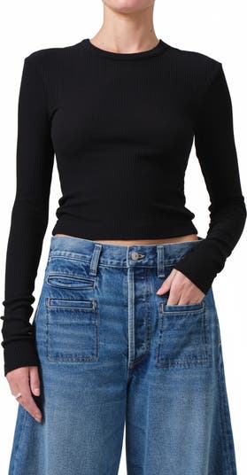 Stretchy ribs follow your curves in this cropped knit top made from a supersoft blend of lyocell and organic cotton.