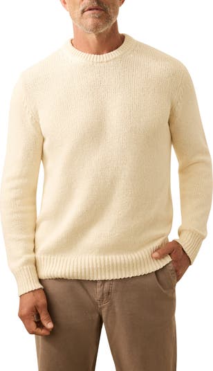 A rib trim is the perfect complement to the natural color of this crewneck sweater knit from organic cotton in a weight that's just right between seasons.