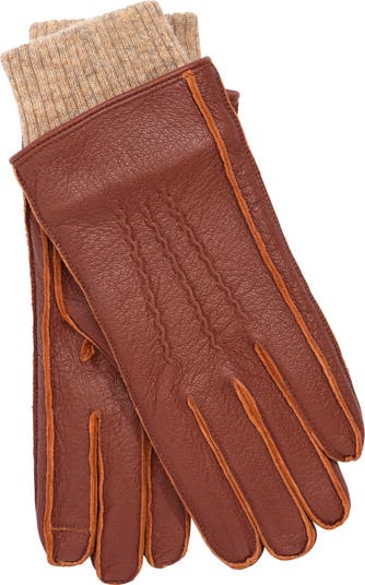 A knit cuff textured with vertical ribbing fits snugly against your wrist to keep out the chill in a pair of supple leather gloves.