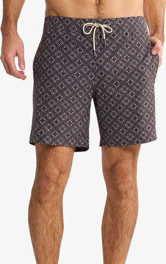 Stretchy fabric made with recycled fibers keeps you comfortable in and out of the water in swim trunks fitted with handy pockets and supportive interior shorts.
