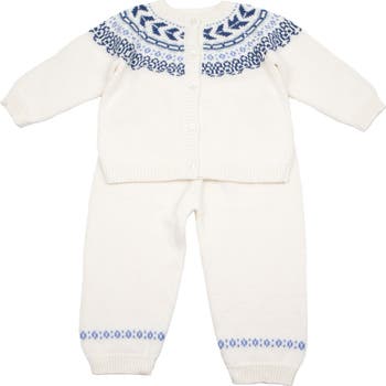 Our Fair Isle Pant Set is the perfect outfit for cooler days, blending comfort and style in an effortlessly classic look. Crafted from ultra-soft Pima Cotton and Modal knit fabric, this two-piece set includes a cozy long-sleeve cardigan top and matching pull-on pants, both designed for all-day ease and movement. Whether you're dressing up for a family outing or keeping it casual, this versatile set is suitable for any occasion. The pants feature a gentle elastic waistband for a comfortable fit, and the soft knit offers just the right amount of warmth for the season. Pair with navy or tan suede shoes for a timeless fall look.