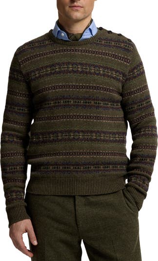 Ralph Lauren Purple Label Fair Isle Stripe Cashmere & Wool Crewneck Sweater