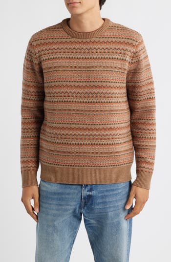 Soft wool-blend yarns warm this sweater knit in a classic, layerable crewneck style in a pallette that makes the ornate Fair Isle pattern come to life.
