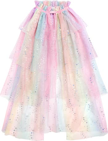 Float into fairytale fun with this dreamy pastel tulle cape, sprinkled with just the right amount of sparkle. Soft layers and a magical shimmer make it perfect for dress-up days, parties, or everyday make-believe moments.