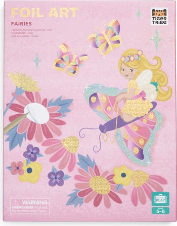 Your little one is ready to embark on a fantastical adventure of magic and creativity with this fairy-themed activity set featuring things like butterfly wings, flower petals, crowns and more all waiting to be brought alive with a sparkling rub of holographic foil.
