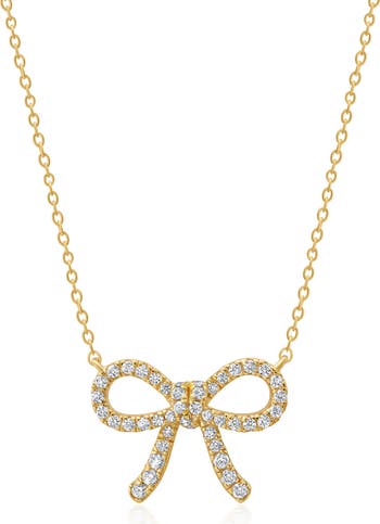 Tie up your daily ensembles with this sparkly bow pendant necklace highlighted with twinkling pavé cubic zirconia.