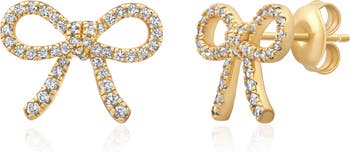 Tie up your daily ensembles with these sparkly bow stud earrings covered in twinkling pavé cubic zirconia.