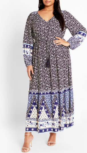 Bring a boho beat to your look of the day (or night) with this flower-showered maxi dress designed with a vibrant border print.