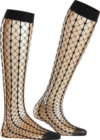 These knee-high socks are made of a stretchy net that adds edgy flair to your look.