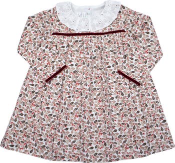 Our Fall Acorns Dress is the perfect outfit to dress for the transitional season. This soft, classic heirloom piece features a beautiful acorn print, white broderie collar, and velvet trim. Suitable for any occasion, this long-sleeved dress is perfect for your little one, providing comfortable and stylish all-day wear. The front of this dress features a velvet trim and gathered waist. The gathered waist detail adds an elegant touch to this classic style. The Colette Peter Pan Collar Dress has a button closure at the neck and comes with a pair of bloomers. We recommend washing on a gentle cycle and line dry to protect the quality of the outfit.