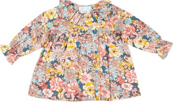 Our fall floral blouse is the perfect piece to include in your wardrobe for the transitional season. This soft, classic heirloom piece features a rich floral print and delicate ruffle detail. Suitable for any occasion, this long-sleeved blouse is perfect for your little one, providing comfortable and stylish all-day wear. It pairs perfectly with our Teal Corduroy Pinafore Dress as well as a cute pair of leggings.
