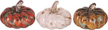 - Enhance your autumn decor with the Transpac Fall Harvest Orange Pumpkin Glass Tabletop Figurine Set, featuring three beautifully crafted glass pumpkins (3.14" dia, 2.36" height) in vibrant multicolor, perfect for indoor use and easy to clean. Easy to maintain: Simply spot or wipe clean to keep your decorative pumpkins looking vibrant and fresh. Enhance your fall decor with the Transpac Fall Harvest Orange Pumpkin Glass Tabletop Figurine Set of 3, featuring vibrant multicolor glass pumpkins perfect for gift giving during the autumn season. Makes a thoughtful gift for the autumn season