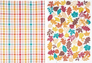 Fall Leaves & Plaid Printed Woven Kitchen Dishtowels Set of 2