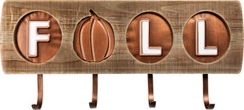 Enhance your Thanksgiving décor with this fall sign, a functional and stylish accent perfect for celebrating the harvest season. The sign features bronze metal embossed letters that elegantly spell out a warm, autumn-inspired message, creating a striking contrast against the wood frame. Its rustic design blends seamlessly with farmhouse, traditional, or modern fall décor, making it a versatile addition to any home. The autumn sign is not only decorative but also practical, featuring hooks that can hold keys, lightweight fall garlands, or seasonal ornaments. Hang it in your entryway, kitchen, or living room to combine functionality with festive charm. The wood frame adds durability and a natural touch, while the embossed metal letters catch light and texture, enhancing the visual appeal. Made for autumn décor, this fall wall sign with hooks complements pumpkins, gourds, wreaths, and other autumn-themed accents. It provides a welcoming touch for guests while offering convenient storage for small items. Its quality construction ensures long-lasting use, allowing you to display it year after year as a key part of your seasonal decorating. Celebrate the harvest season with this stylish and practical Thanksgiving wall accent that merges decorative beauty with everyday utility. Product Features: Embossed text with a debossed pumpkin motif Distressed wood frame with 4 hook keyholders Easy to hang from 2 sawtooth hooks on the back Recommended for Indoor use only Dimensions: 9"H x 20"W x 1"D Material(s): wood/metal