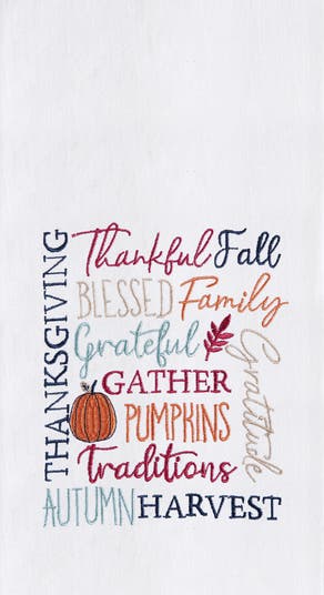 essence of family traditions, gratitude, and the harvest season. Whether you're preparing for a cozy family gathering or simply sprucing up your kitchen decor, this dishtowel is the ideal choice. It also makes a thoughtful gift for friends and loved ones who appreciate seasonal decor. Crafted from soft, all-cotton material, this towel is not only stylish but also highly functional. Its supple and super-absorbent texture makes it perfect for everyday kitchen tasks, from drying dishes to wiping up spills. You can even use it for bath handwashing, cleaning, and drying, adding a touch of fall festivity to any room. Measuring 18x27 inches, it provides ample coverage and utility for all your needs. Each towel is sold individually, allowing you to mix and match with other designs or purchase multiples for a coordinated look. Be sure to check out our sets if you're looking for more options. Caring for this dishtowel is a breeze – it's machine washable, so you can keep it looking fresh and vibrant with minimal effort.