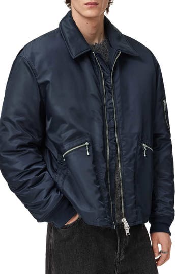 Recycling in both a literal and figurative sense factors significantly in the design and construction of this bomber jacket inspired by vintage military styles and made with recycled materials, from shell to to lining to fill.