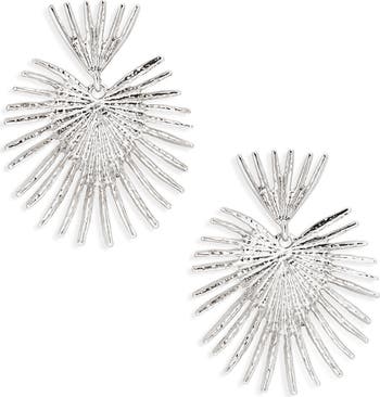 Textured sunrays explode from these fan-shaped statement drop earrings boasting a high-shine finish.