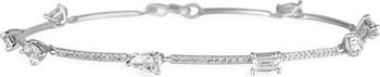 Slender, diamond-arrayed curved 14-karat-gold links are joined by larger prong-set diamonds in a variety of faceted shapes for a simple, stunning bracelet.