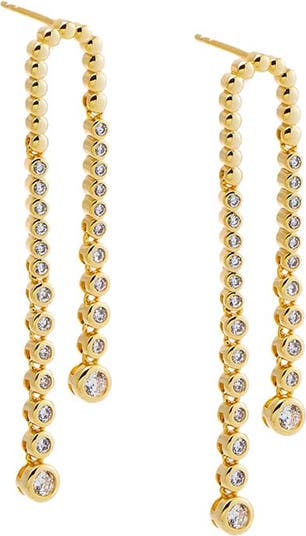 Fancy CZ Bezel Double Tennis Drop Stud Earring