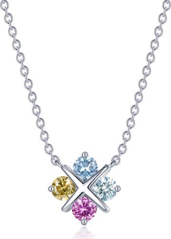 Beautiful multicolored lab-grown sapphires bring brilliant shine to this polished necklace rendered from sterling silver bonded in platinum.