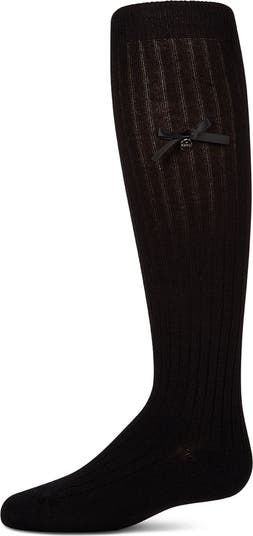 She'll show off her excellent taste every time she wears these elegant knee socks. They're cotton-rich for comfort, with ribbing for flexible stretch and spandex for shape-keeping fit. Plus, they're adorned with a lustrous satin bow and tasteful MeMoi logo for chic style at every step.