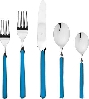 The Fantasia Collection from Mepra is the perfect combination of color and sophistication. Elevate your dining experience with our Italian-crafted flatware, skillfully made from top-tier 18/10 stainless steel and resilient Nylon-Fiberglass resin. Timeless in design, these pieces feature a colorful and elegant form. With a seamless construction, the Stainless Steel body extends to the handle's end, ensuring durability. The knives are enhanced with double serration for enduring sharpness and the entire set is dishwasher safe and backed by a lifetime warranty on the handle. Discover a perfect balance of aesthetics and functionality that's not only long-lasting but also food-safe and stylish.